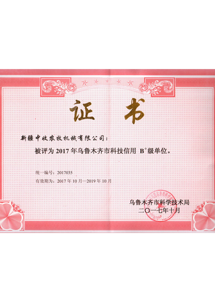 科技信用評價信用等級證書